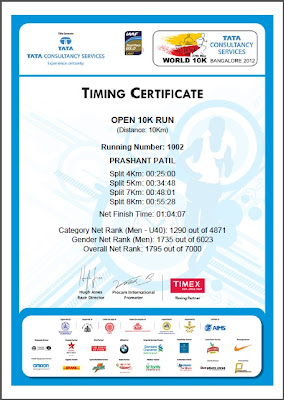 Race was starting at 5.15 am. I called up Romel, he was on his way to the venue. He was there by 4.30 am. I collected the running stuff, thanked him for helping me out and wished him a good run. After all the drama, I just wanted to complete the race without worrying about PR [Personal Record]. I started the race with slow pace, weather was awesome. Initial 4 kms was inside the campus, around 13 kms of run was outside campus and rest 4-5 kms was again inside the campus. Overall my run was good, I cracked time of 2 hr 12 mins to complete the race. Well, that was my best timing so far.